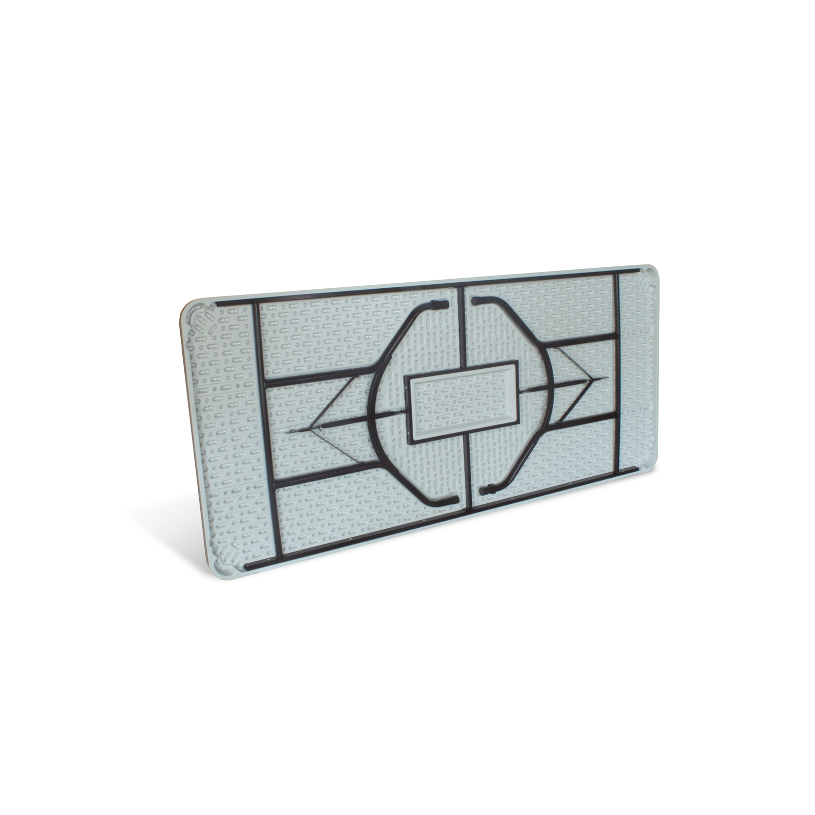 Estrutura Metálica Dobrável: Pés dobráveis em metal na cor preta, proporcionando estabilidade quando aberta e praticidade no transporte e armazenamento quando fechada.